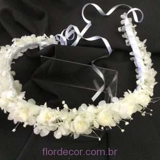 Esta guirlanda de flores preservadas é composta de hortênsias e 7 rosinhas micro preservadas e mosquitinhos. “Recebido! Ficaram lindas, super delicadas. Mto obrigada!!”- Data