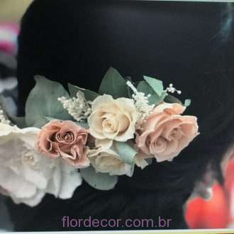 Flores preservadas são flores naturais que passaram por um processo de estabilização, permitindo que mantenham o aspecto e toque de frescas por muito tempo. As flores do cabelo vão manter a mesma beleza até o fim da festa.
