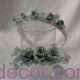 arranjo de cabelo de daminhas com hortênsias naturais preservadas e pérolaas