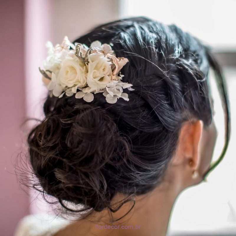 Vejam como ficou lindo o arranjo de cabelo de flores NATURAIS preservadas que fizemos para a Camila Sato.