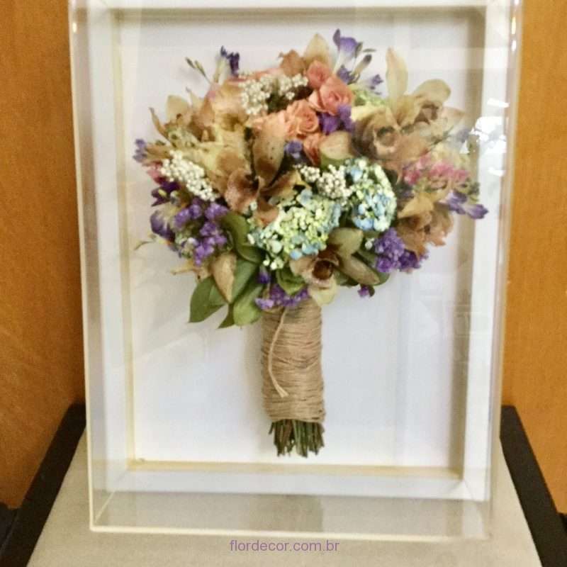 Buquê ou bouquet desidratado composto de hortênsias, orquídeas e rosas para Ana Paula Fraga.