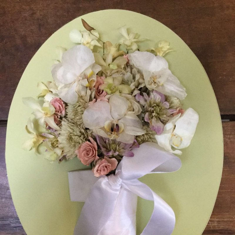 Este é o buquê ou bouquet da Marina Lang, composto de rosas, orquídeas e crisântemos, que nos foi trazido pela Betta Eventos para desidratação.