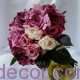 Este buquê de flores preservadas é composto de 3 gardênias cherry blossom, 3 cramberry, 3 rosas premium cherry blossom e 3 cramberry, 4 rosas médias cramberry, 3 cherry blossom e 3 porcelana e saia de folhas. A Patricia também levou a lapela do noivo.