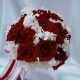 Com o fundo todo de rosas preservadas porcelana e por cima algumas gardênias brancas, este buquê de noiva de flores preservadas foi feito para Sarah Novais e despachado para Cuiabá. A saia de plumas complementa.