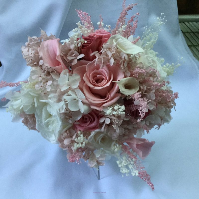 Este buquê ou bouquet de flores preservadas composto de rosas e callas foi feito para a Driely Alves Moura.