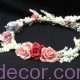 Coroa tiara rosinhas e solidagos tons de rosa e lilás guirlanda