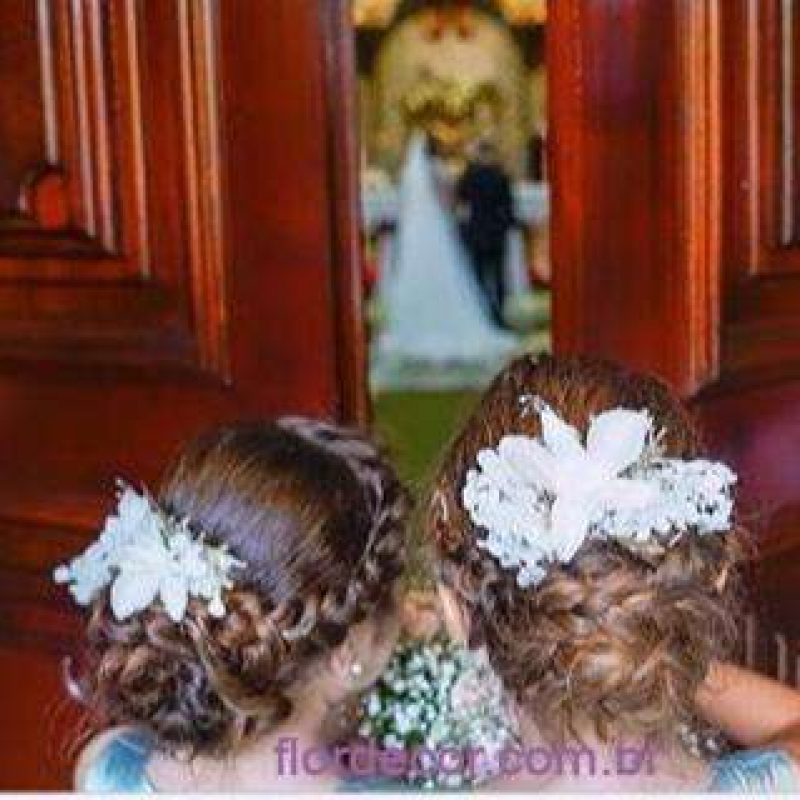 Estas daminhas ficaram lindas com os pentes de hortênsias e orquídeas dendrobium preservadas,