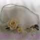 arranjo de cabelo de flores naturais preservadas montado pelo cabeleireiro com florzinhas preservadas avulsas: 3 spray brancas, 2 rosinhas baby, 2 macinhos de hortênsia nude e 3 macinhos de mosquitinhos.