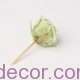 Este tipo de aramação é bom para arranjos que ficam estáticos, mas não para bouquets, que vão ser muito manuseados.    Atravesse um arame no. 20 na base da rosa, na transversal.  Depois dobre o arame e torça, com cuidado para não quebrar o cabinho.  Corte no tamanho desejado e cubra com fita floral verde.